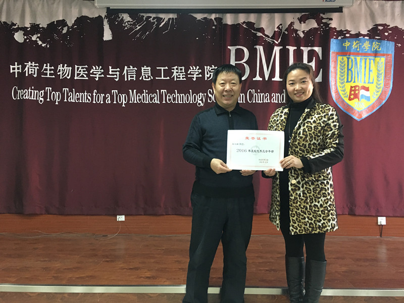 钱唯院长、姜永生主席为生物医学影像系工会小组颁发先进工会小组奖状