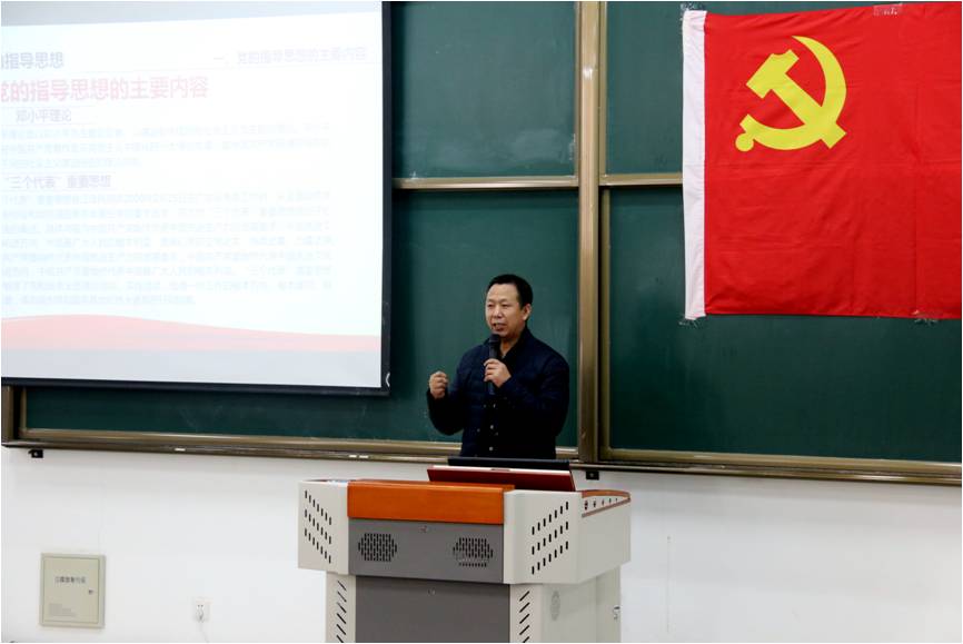 开班仪式在雄壮的国歌声中拉开帷幕,王帅、亓红强、徐长文、李晓璐为学员代表授旗、颁发党章,并合影留念。开班仪式结束后初青松为所有学员讲授了《中国共产党的指导思想》,初青松从中国共产党的指导思想的主要内容、功能和特征、发展历程、与时俱进、发展的基本规律等方面对党的指导思想进行了细致解读。初青松旁征博引、深入浅出的讲解,让学员们对党的指导思想有了更深刻的理解,也更坚定了学员们更加坚定了加入党组织、为共产主义事业奋斗终生的信念。