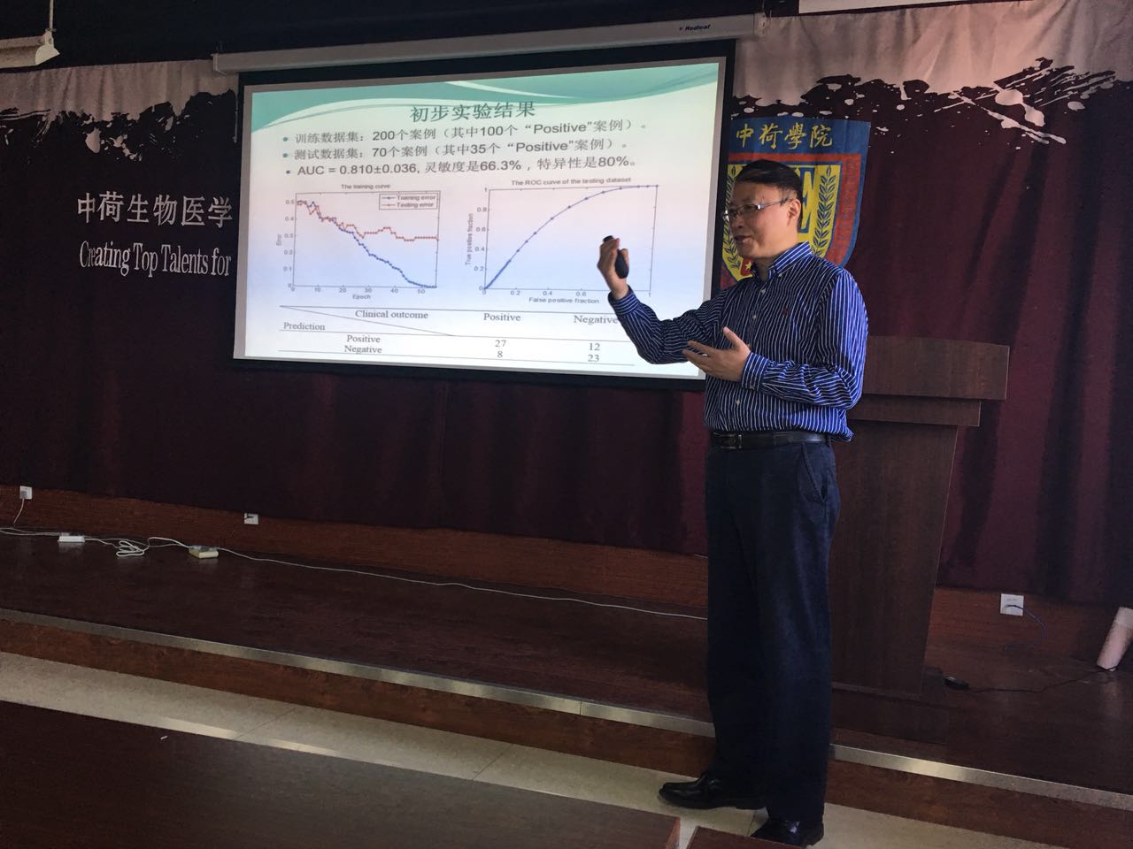 2017年5月25日,美国医学与生物工程院院士(AIMBE Fellow)、俄克拉荷马大学电机和计算机工程系教授郑斌博士应邀访问中荷生物医学与信息工程学院,并做了题为“医学影像定量分析和人机互动式的计算机辅助检测系统”的报告。郑斌教授在报告中指出,未来,新一代X光乳腺图像的计算机辅助检测系统应该是一个能够将乳腺癌近期风险预测,可疑肿瘤检测,良恶性分辨结合在一起的人机互动式计算机辅助检测系统,为此目标,我们需要从医学影像中探索和提取许多不同的图像特征,利用人工智能的方法来选择优化的特征以及建立优化的机器学习评估模型。在今后的工作中,如何与“深度学习”和“大数据分析”的技术融合,将会是发展新一代计算机辅助检测和诊断中一个值得关注的研究方向。郑斌教授的报告由院长钱唯教授主持。
