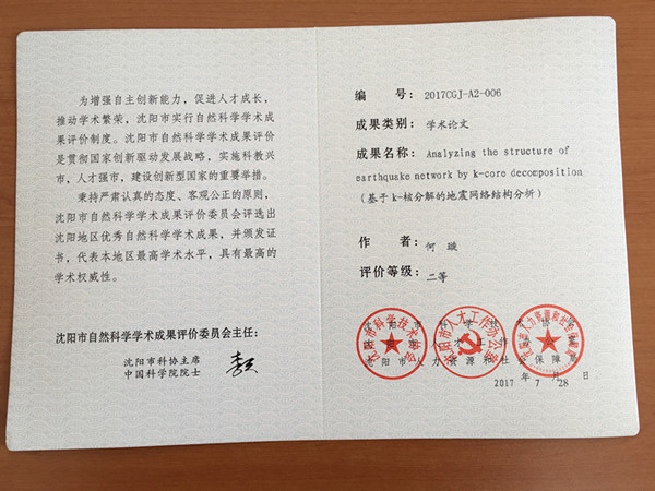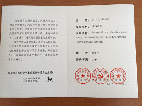 2017年沈阳市自然科学学术成果奖