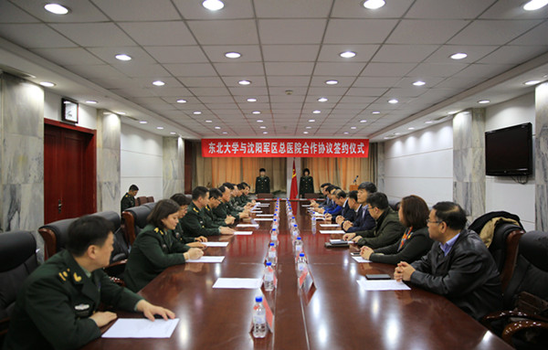 2018年4月23日上午,东北大学与沈阳军区总医院签署医学与生物信息工程学院共建协议,探索医工结合培养“新医科”拔尖创新人才的新途径。沈阳军区总医院院长侯明晓、副政委田敬革、副院长白晓忠,东北大学校长赵继、总会计师芦延华出席仪式。双方相关部门负责人参加签约仪式。