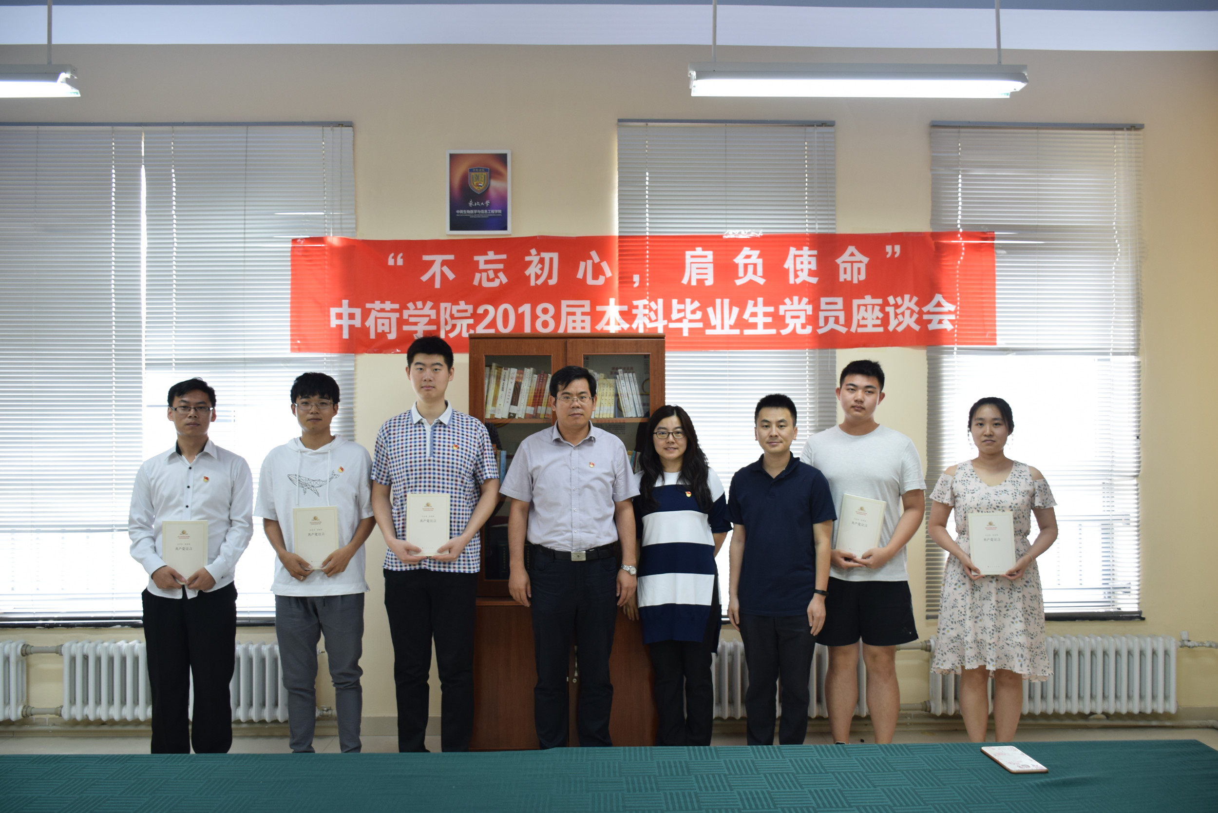 6月27日中午12:00,在生命学馆B326党员活动室举行“不忘初心•肩负使命”中荷学院2018届本科毕业生党员座谈会暨最后一次党课活动。学院党委书记郝建山、党委副书记兼副院长王帅、辅导员以及所有本科毕业生党员参加了此次座谈会。