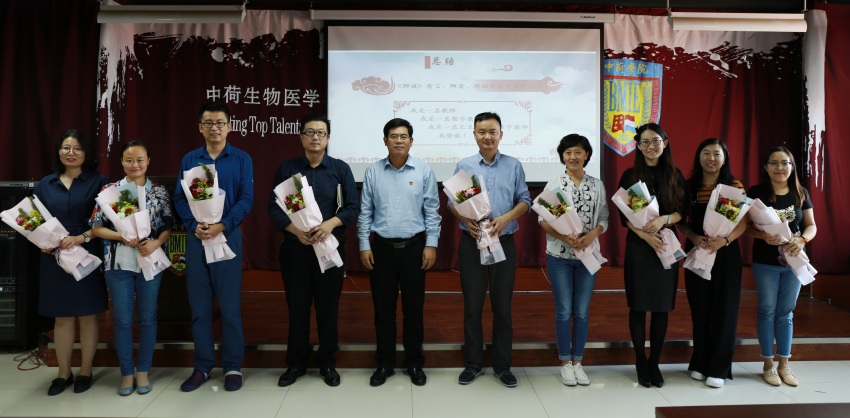 会上还举行了“谢师礼”活动,学生代表分别为卲新慧老师和中荷学院专业教师送上献花和节日祝福。