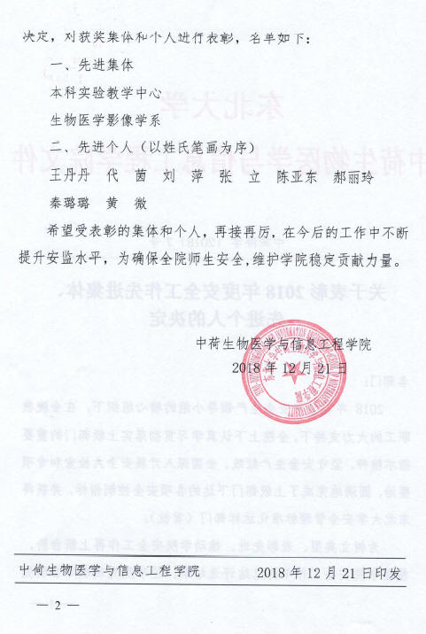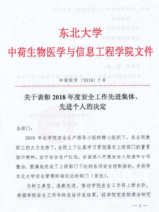 中荷院字【2018】7号-关于表彰2018年度安全工作先进集体、先进个人的决定