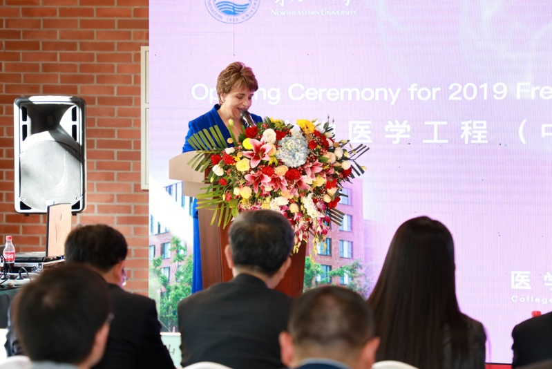 接着,来自英国邓迪大学科学与工程学院院长Jose教授作为教师代表发言,他表示向新生介绍了邓迪大学科学与工程学院的教师团队、实验室基本条件、研究方向及学生在医院实习情况,期望2019级新生在东北大学的三年可以打下良好基础,第四年在邓迪大学绽放辉煌。