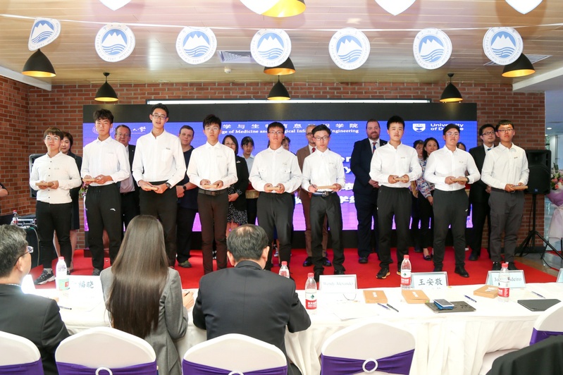 9月23日下午2时,东北大学医学与生物信息工程学院生物医学工程专业(中英项目)首届新生开学典礼在生命学馆一楼大厅举行。东北大学副校长孙雷、英国邓迪大学副校长Alexander Wendy出席典礼并致辞。东北大学医学与生物信息工程学院、国际合作与交流处、国际交流学院、教务处、学生处、资产处,英国邓迪大学科学与工程学院、全球发展事务处相关领导、生物医学工程专业2019级全体新生出席典礼,大家欢聚一堂、其乐融融。