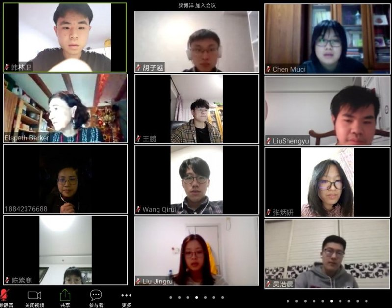 本次座谈会由三部分组成,首先,Elspeth Barker向同学们声情并茂地介绍了英国邓迪市的气候、自然环境,英国邓迪大学的图书馆、基础教学设施等具体情况,并表达了对同学们第四年到达英国学习的期待;接着,在师生互动环节,同学们就未来第四学年在邓迪大学的教学计划、在英住宿、课程学习以及实习等方面向老师提出了自己的疑问,Elspeth Barker一一详细作答,现场气氛热烈。最后王丹丹老师进行总结,按照学院整体安排、邓迪项目今后每月开展的“与邓迪老师面对面”线上交流活动将会以更丰富的内容、更生动的形式和大家见面,期待大家继续积极参与。同学们表示在对英国学习充满期望的同时,也期待春暖花开之时,与邓迪老师相约东大校园。
