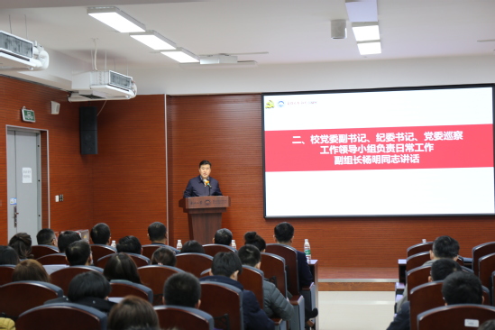 杨明代表学校党委和巡察工作领导小组发表讲话指出,巡察工作对坚持党的全面领导、加强党的建设、坚持社会主义办学方向、落实立德树人根本任务具有重要意义,对层层落实管党治党办学治校的政治责任、推进学校治理体系和治理能力现代化具有极端的重要作用,是保证一流大学建设稳步推进和加快推进的重要举措。