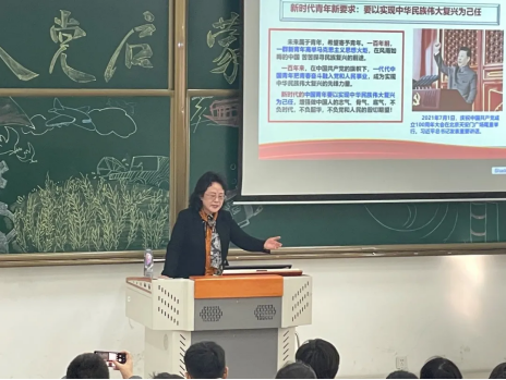 邱秀华教授结合习近平总书记在“七一”讲话中对新时代中国青年提出的“要以实现中华民族伟大复兴为己任,增强做中国人的志气、骨气、底气,不负时代,不负韶华,不负党和人民的殷切希望”,结合新时代青年学生如何把青春献给党,如何让信仰为青春领航两个问题,向同学们提出了坚定理想信念、学好科学理论、练就过硬本领、厚植爱国情怀、勇于担当使命的五点希望。