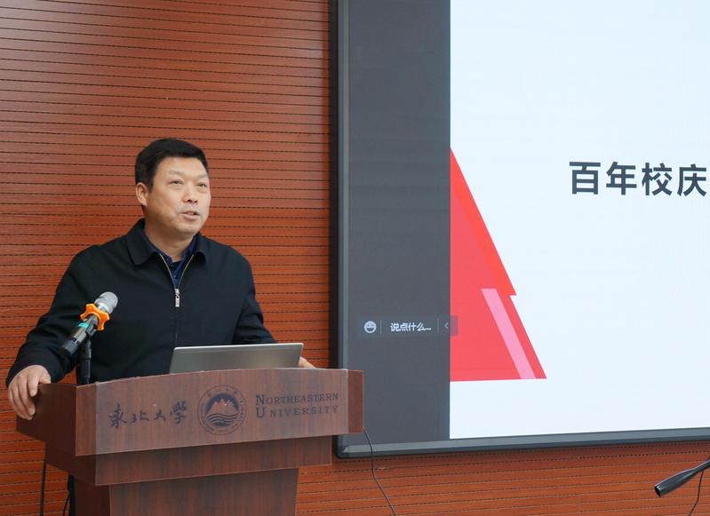 李鹤处长讲到,东北大学九十余年砥砺前行,东大人始终以强烈的使命担当,在爱国荣校、培育英才、服务国家等各个方面形成了自己的办学特色,在办学过程中始终践行为党育人、为国育才的初心使命,书写每个时代的报国华章。接着他就百年校庆有关工作部署和基金筹集及其使用安排等情况作了介绍。会议最后,王帅代表学院党委做总结发言。她表示学院目前正处于发展的关键时期,我们通过重温与新中国共奋进的九十余年校史,激发党员干部和教职工干事创业的智慧和力量,努力推进“双一流”建设、不断开创工作新局面,用工作实绩献礼百年东大。