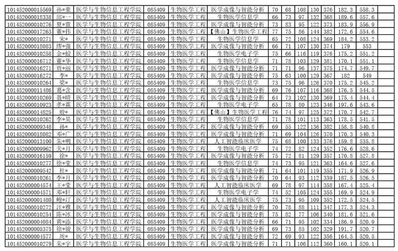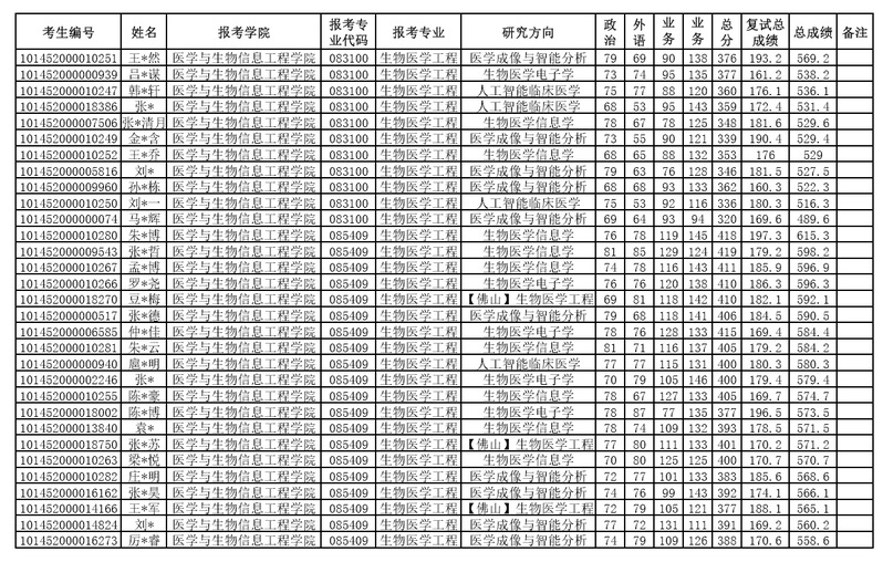 东北大学医工学院2022年硕士研究生招生考试 复试成绩公布
