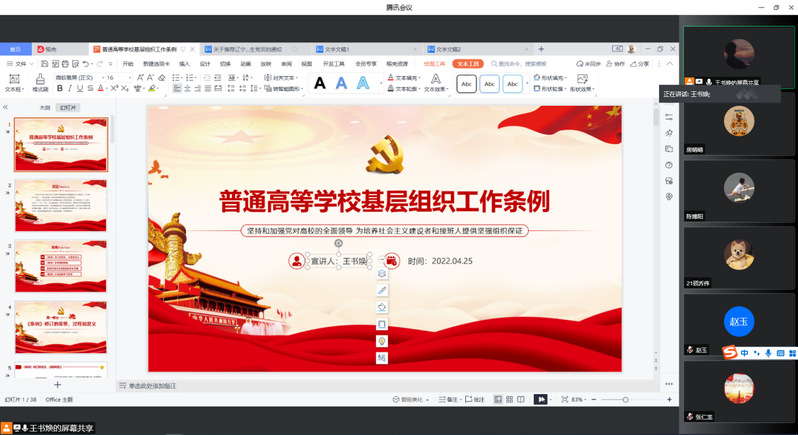 4月25日下午4点,医工学院2021级硕士生党支部开展深入学习《中国共产党普通高等学校基层组织工作条例》专题学习活动。