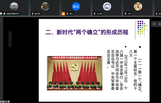 段炼以《“两个确立”的历史进程及重大意义》为题,从党的十九届六中全会通过的《中共中央关于党的百年奋斗重大成就和历史经验的决议》入手,围绕新时代“两个确立”形成的历程及其形成的标志,全面解读“两个确立”的科学内涵和理论精髓,并从政治和历史两个维度剖析“两个确立”的重大意义。最后他指出,“两个确立”是党的十九届六中全会做出的重大历史决定,是党的十八大以来最重要的政治成果,对新时代党和国家事业发展、对推进中华民族伟大复兴历史进程具有决定性意义。通过学习,与会党员师生精神上受洗礼,思想上受鼓舞,纷纷表示要在新时代新征程上,争做当代中国马克思主义坚定信仰者、有力传播者和科学实践者,以实际行动和优异成绩迎接党的二十大胜利召开。