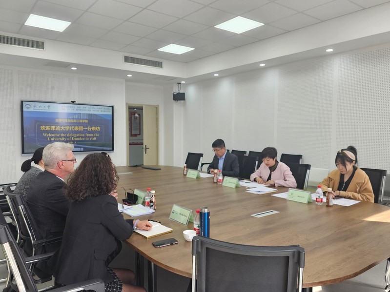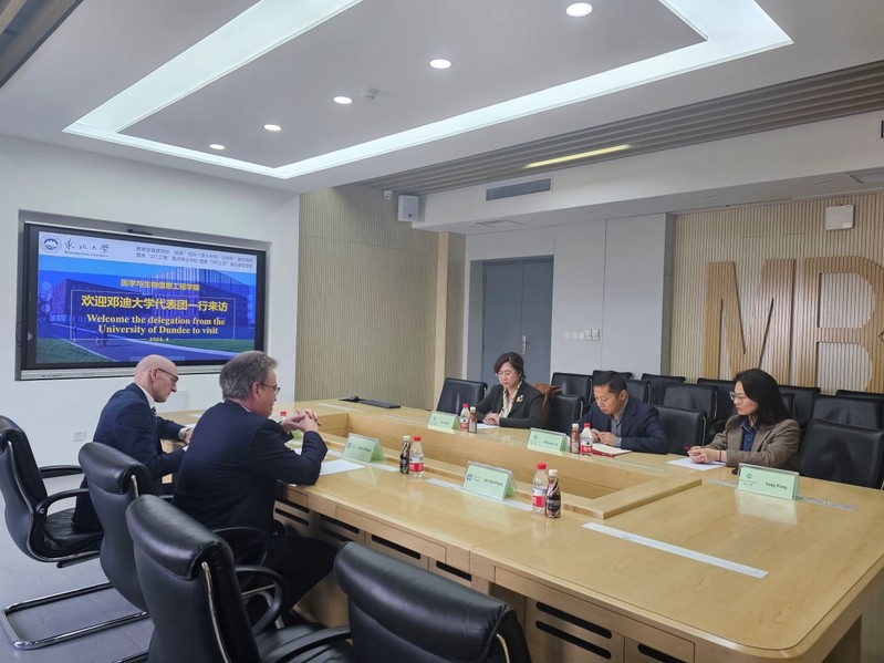 202449日,英国邓迪大学校长Iain Gillespie、副校长(科研事务)Lisanne Gibson教授、副校长(教学事务)Blair Grubb教授、理工学院院长Fordyce Davidson教授、中国首席发展官Zhi Qiu Finlay女士一行5人来访东北大学医学与生物信息工程学院。学院党委书记刘海龙、执行院长赵越教授、院务执行助理王之琼教授及学院相关部门负责人会见来访客人。